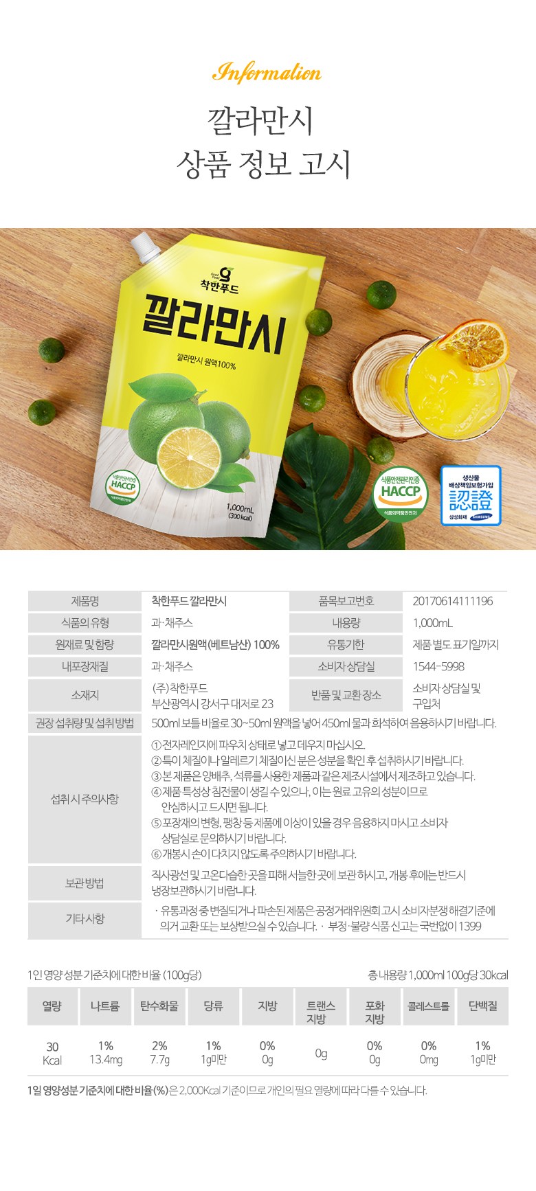 착한푸드 착한푸드 깔라만시 원액, 1L, 1개