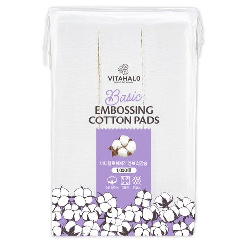 비타할로 무형광 엠보싱 순면 화장솜 대용량, 1000개입, 1개